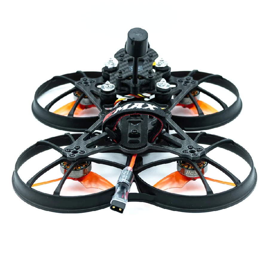 The EMAX Cinehawk is cinematic focussed 3.5″ cinewhoop which includes the DJI O3 video system. The Cinehawk includes powerful 2004, 3000KV motors to allow the cinehawk to carry payloads such as action cameras. The plastics and other materials used are very high quality – aerospace grade which helps maximise the strength to weight ratio.