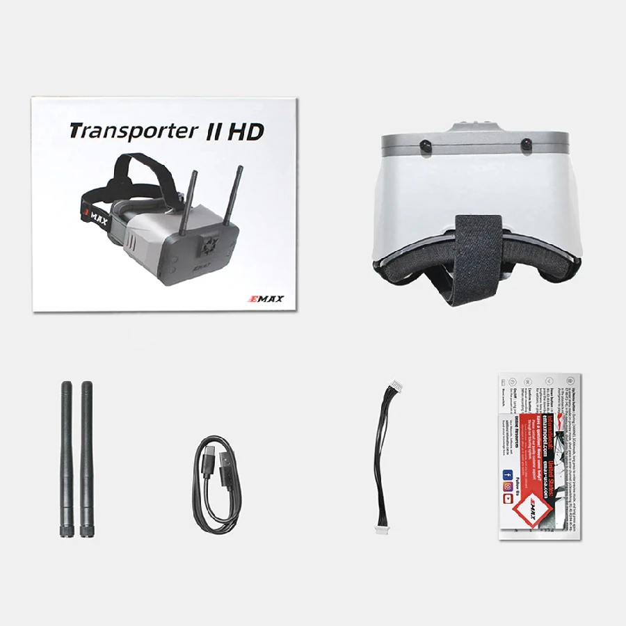 The EMAX Transporter II Goggles are compatible with the HDZero high definition FPV video system. The goggles boast a bright HD resolution display which offers extremely low latency video. The Transporter II goggles have an on board DVR that can record HD quality videos. The screen is detachable and can be used standalone. Power is provided by a built in 2200mAh batter which is charged over USB.