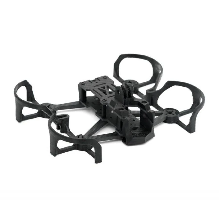 The Ethix CineRat is a 3” frame designed for filming. When we looked into what we wanted in a small compact cine frame the main thing that stood out was we didn’t want ducts. So we set out to design a 6s motor (flat rat motors) to complement this frame so that it could haul a full size camera with enough thrust for a 6” props and allow us the add on of just prop guards for safety. With a 3” frame based around 6s we also wanted the ability to carry a full size fc/esc stack with the option of a 20×20 if that’s your thing. There’s the option for GoPro mounts on the front and back as well as a 10deg couch. We added front fpv camera protection for those that want to utilize the split cam mounts on the front of the frame and on the bottom of the protection is a slot for mounting your immortal T antenna.
