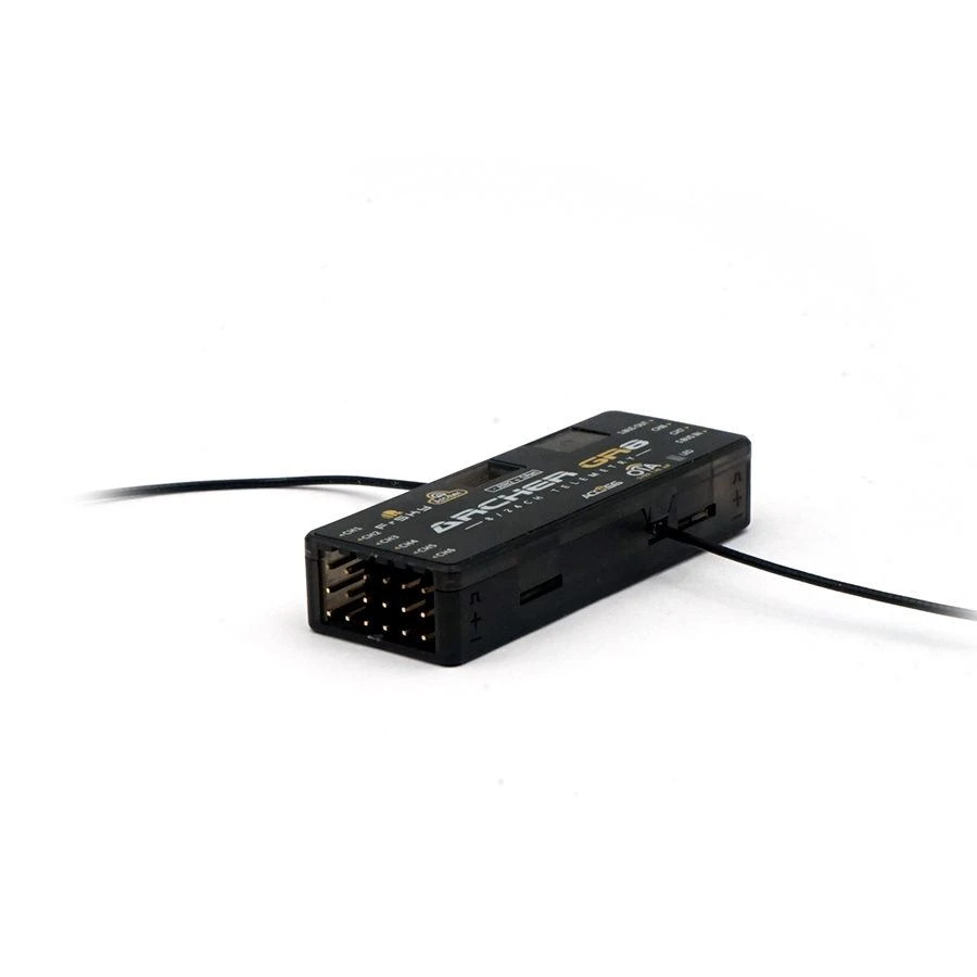 The ARCHER GR8 maintains its small form factor. Thanks to the ACCESS protocol and hardware optimizations, you can now use 8 high-precision PWM channels and 16 SBUS channels via standard servo connectors at the same time. In addition, any SBUS equipped ACCESS receiver can be connected to the SBUS IN port turning it into a redundant receiver, the GR8 will automatically use the receiver with the best signal. Powering the receiver via a speed control? Simple battery voltage monitoring is now available through the AIN port.