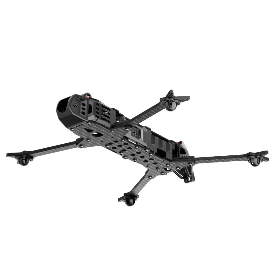 The GEP-LC75 V3 is a long range frame, which uses H-shaped structure design and adds protective side panels to the fuselage to protect the electronic control system from dust pollution. The arm is made of 6mm thick carbon fiber plate to improve flight stability. The fuselage structure optimizes the strength of the main stress points to ensure strong crashworthiness.