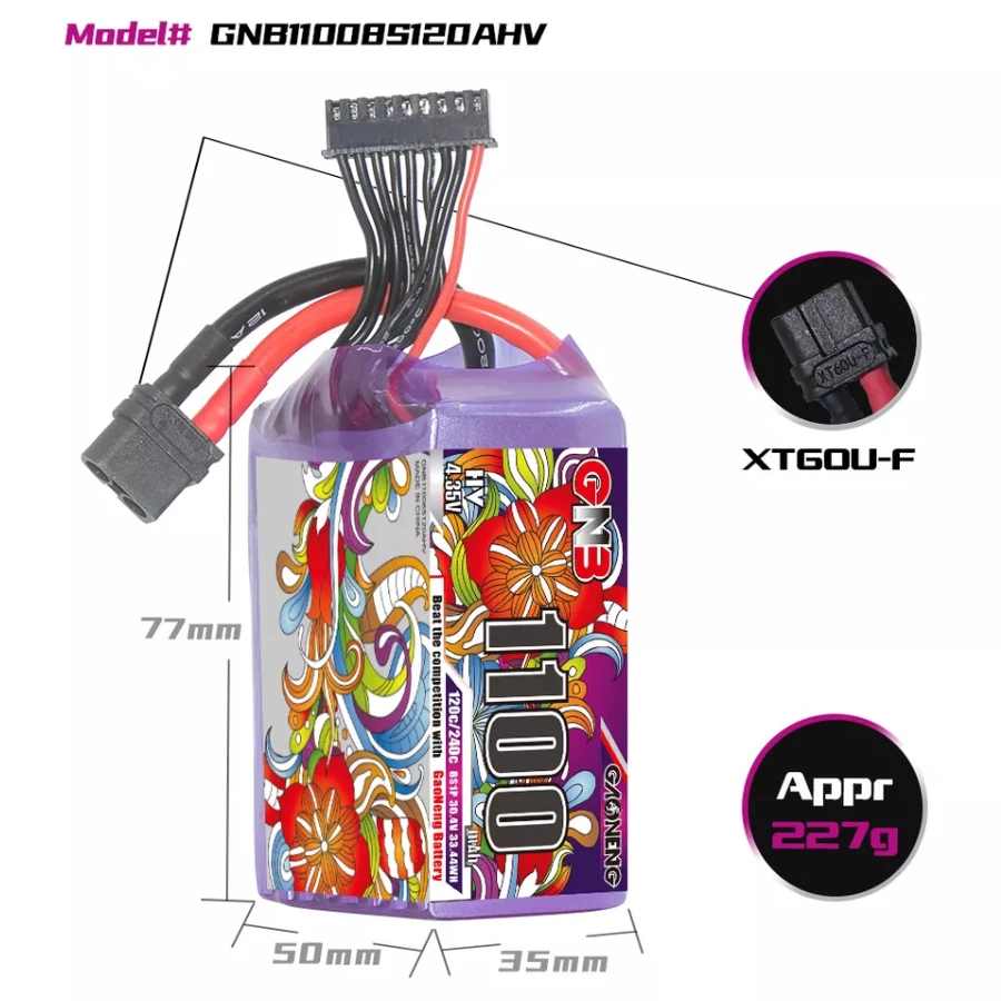 – Model: GNB 1100mAh 8S 120C LiHV Battery