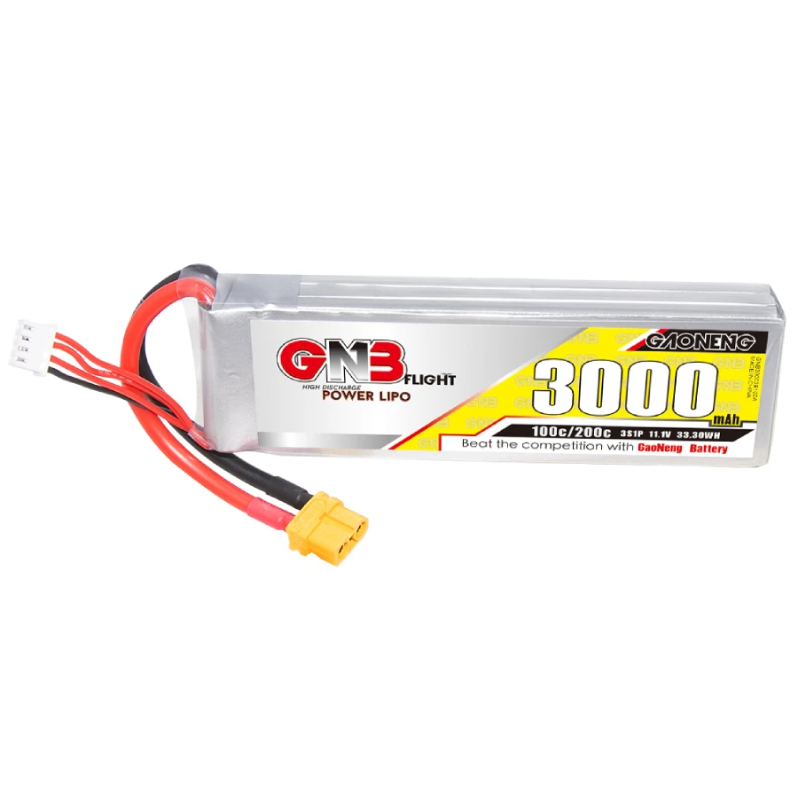 The GNB 3000mAh 3S 100C LiPo Battery is a high quality LiPo battery manufacturered by Gaoneng, more commonly known as GNB. It features a rating of 100C for constant discharge upto a massive 200C for short bursts. The battery is fitted with an XT60 connector and includes a JST-XH balance plug.