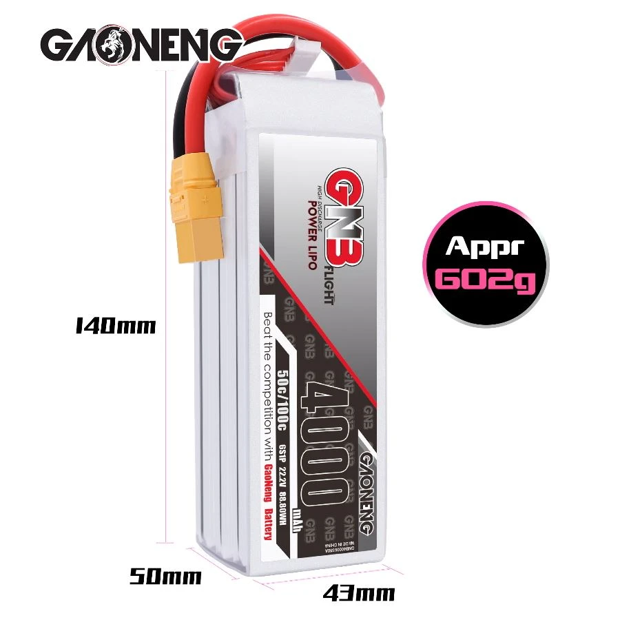 – Model: GNB 4000mAh 6S 50C LiPo Battery