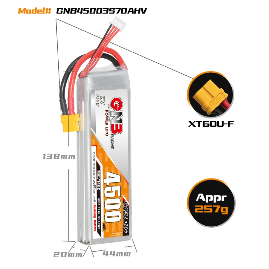 – Model: GNB 4500mAh 3S 70C LiHV Battery