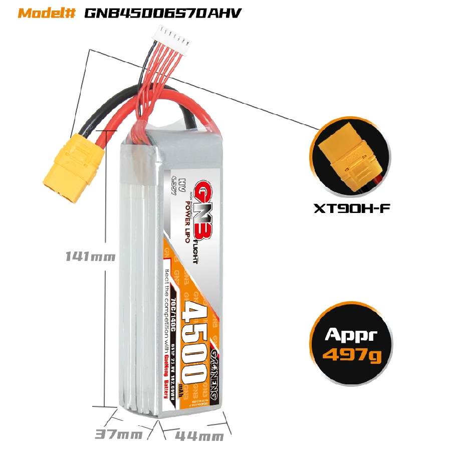 – Model: GNB 4500mAh 6S 70C LiHV Battery