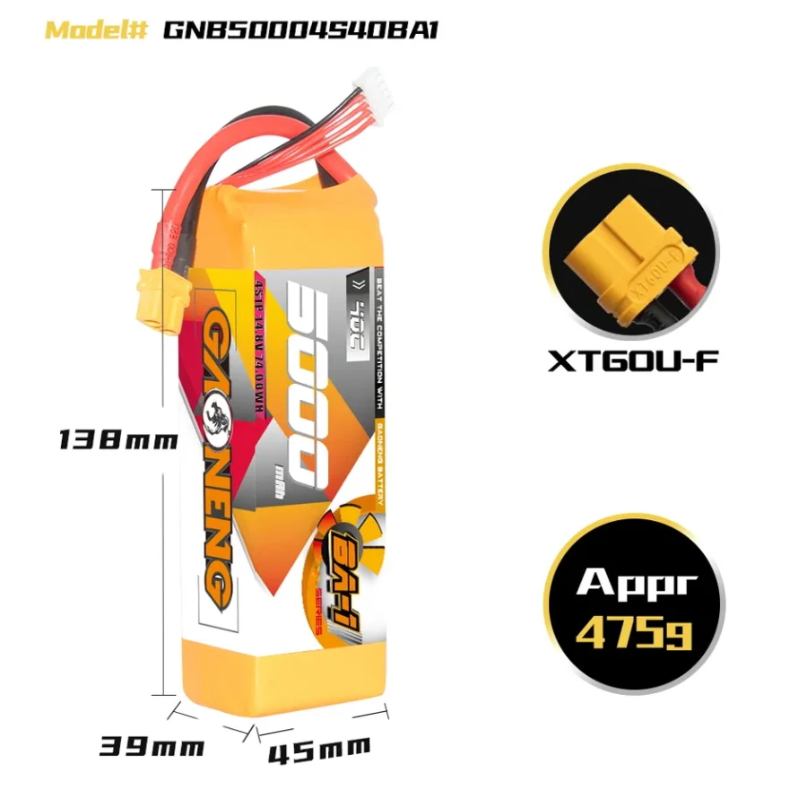 – Model: GNB 5000mAh 4S 40C LiPo Battery