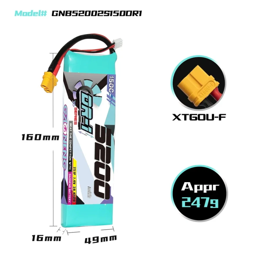– Model: GNB 5200mAh 2S 150C LiPo Battery