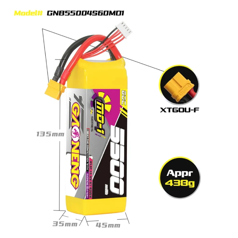 – Model: GNB 5500mAh 4S 60C LiPo Battery