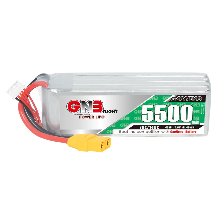 The GNB 5500mAh 4S 70C LiPo Battery is a high quality LiPo battery manufacturered by Gaoneng, more commonly known as GNB. It features a rating of 70C for constant discharge upto a massive 140C for short bursts. The battery is fitted with an XT90 connector and includes a JST-XH balance plug.