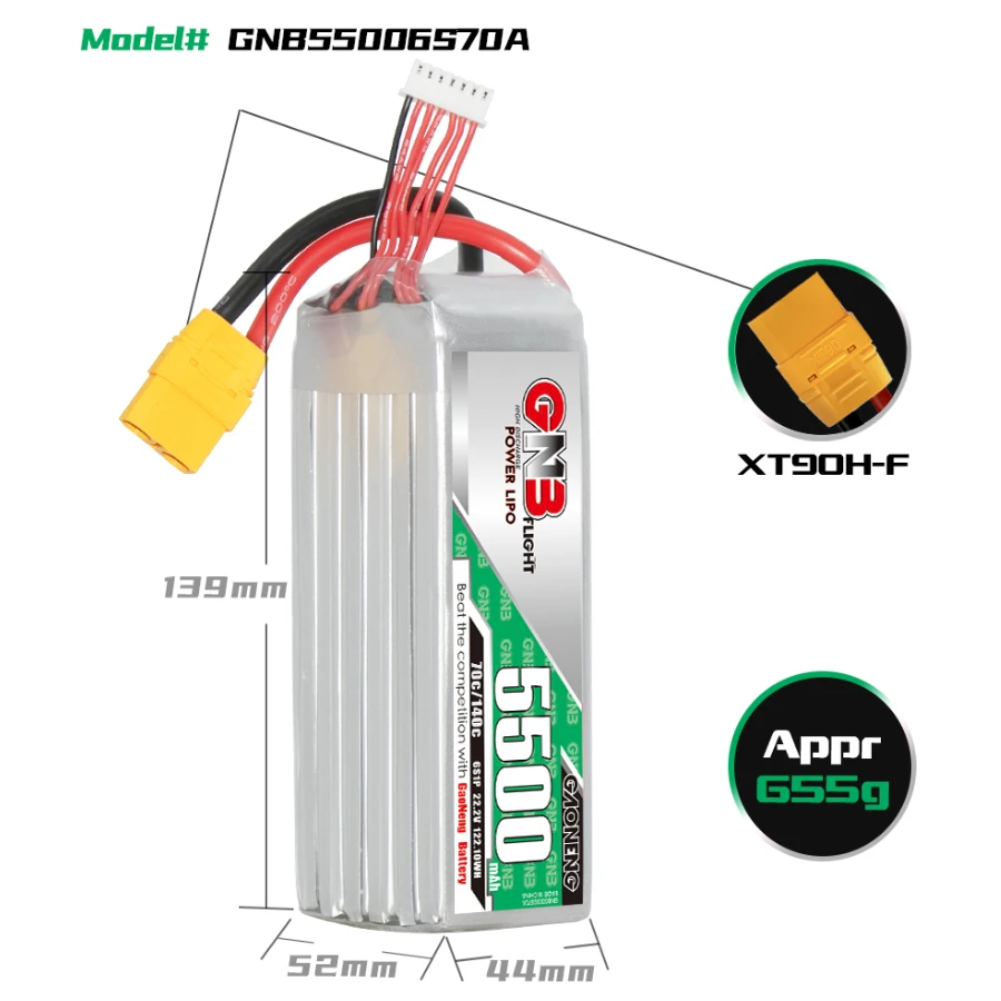 – Model: GNB 5500mAh 6S 70C LiPo Battery