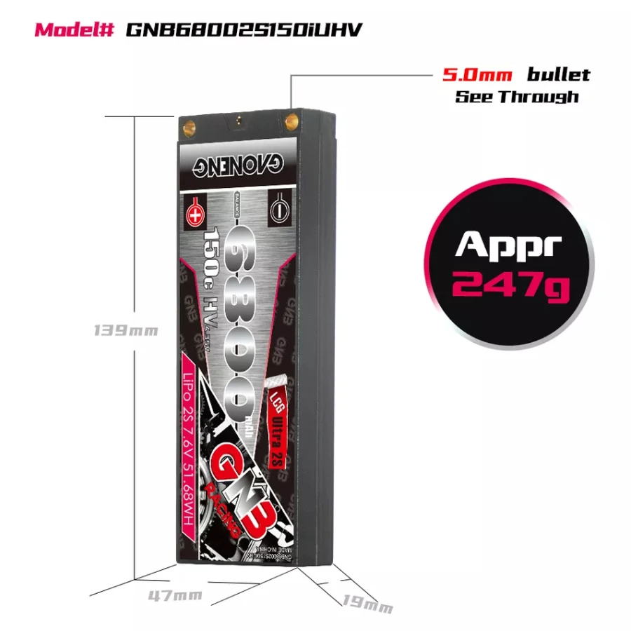 – Model: GNB 6800mAh 2S 150C LiHV Battery
