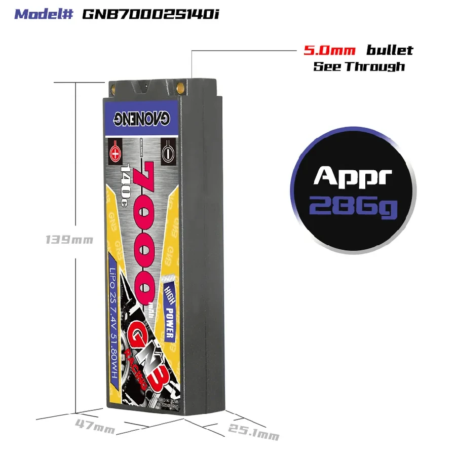 – Model: GNB 7000mAh 2S 140C LiPo Battery