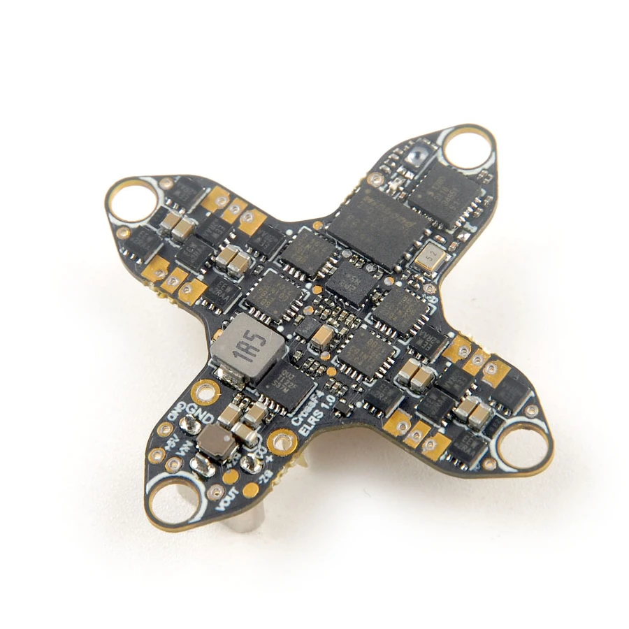 The Happymodel CrossF4 ELRS flight controller comes with integrated UART 2.4GHz ExpressLRS receiver and 5A Blheli_s 4in1 ESC which supports 1-2s. The board is ideally suited to Tinywhoops. The 2.4GHz ExpressLRS receiver is equipped with the SX1280 radio frequency chip with high sensitivity, high packet rate and low latency, this flight controller is the one that all Race/Freestyle pilots needed. The built-in ELRS receiver is UART type (rather than SPI) which makes it faster and allows firmware upgrades just like the Happymodel EP1, via betaflight pass-through or WIFI. The default firmware is ELRS V3.0.1.