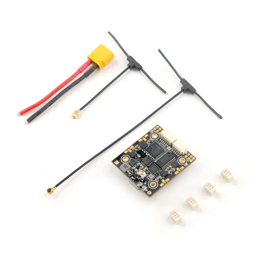 The Happymodel ELRS X1 flight controller comes with an integrated SPI 2.4GHz ExpressLRS receiver and 12A BlHeli_S ESC, able to support 2-4s. The X1 includes mosfet that can support 12A currents making it ideal for toothpick or long range drones. The X1 also includes a 2.4GHz ExpressLRS receiver is equipped with the SX1280 radio frequency chip with high sensitivity, high packet rate and low latency. The flight controller includes a 6 pin SH1.0 plug for CaddxFPV Vista HD VTX and 5 pin SH1.0 plug for analog VTX.