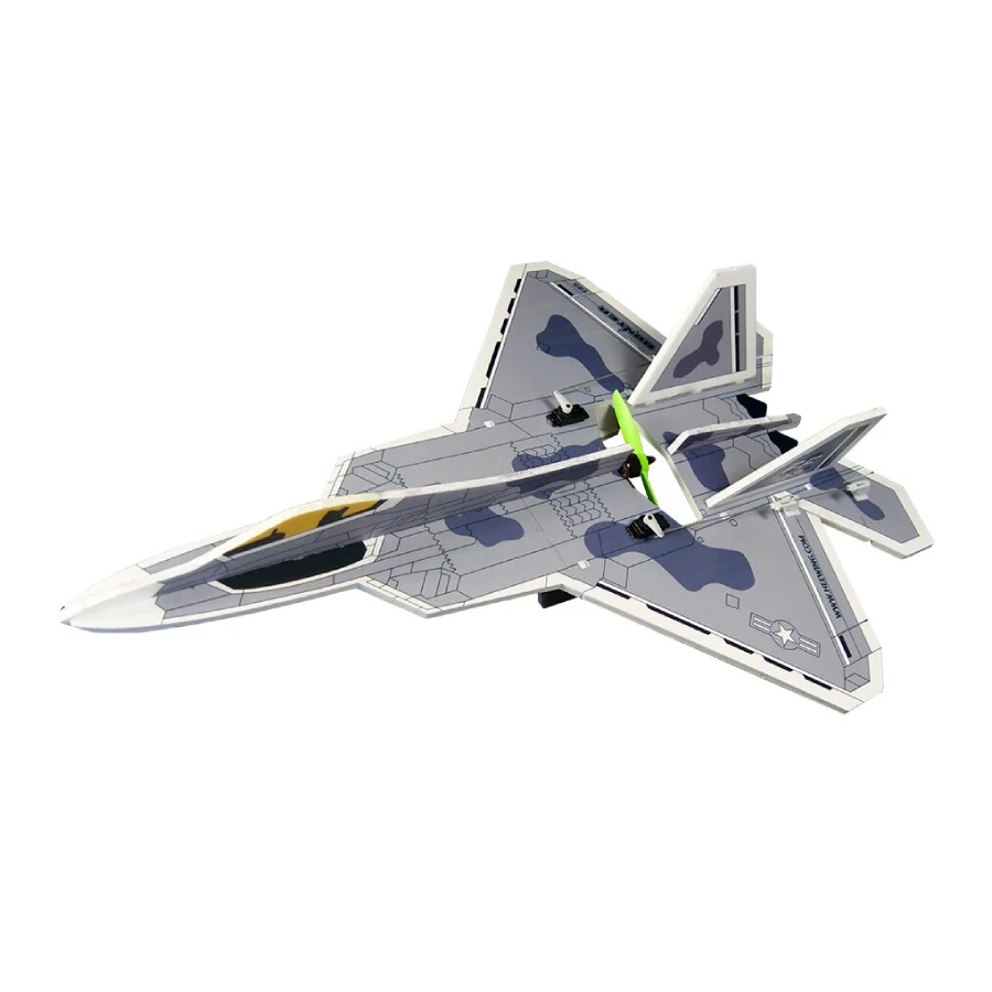 The Hee Wing F22 plane is made from 5mm MPP board which has been pre-laser cut and decorated. The kit includes motors, servos and ESC and just requires assembly. Also included is a flight stabiliser board that is compatible with SBUS receivers. The stabiliser allows much easier take off as it will keep the plane stable through launch and allows for aerobatic flight.