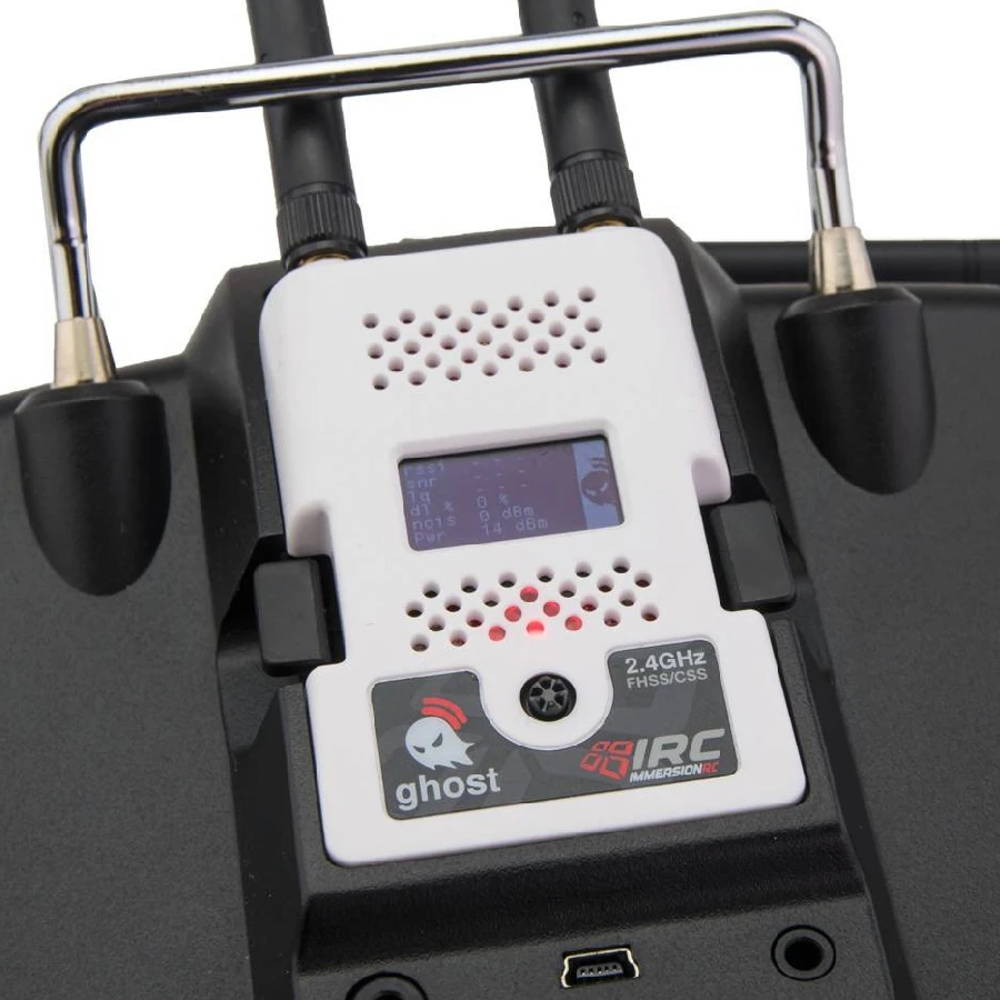 The ImmersionRC Ghost JR radio system is designed as the ultimate 2.4GHz module for radios with the Lite module slot. The system runs is capable of both short range low latency (222.22Hz Pure race) and long range capabilities (10s KM).