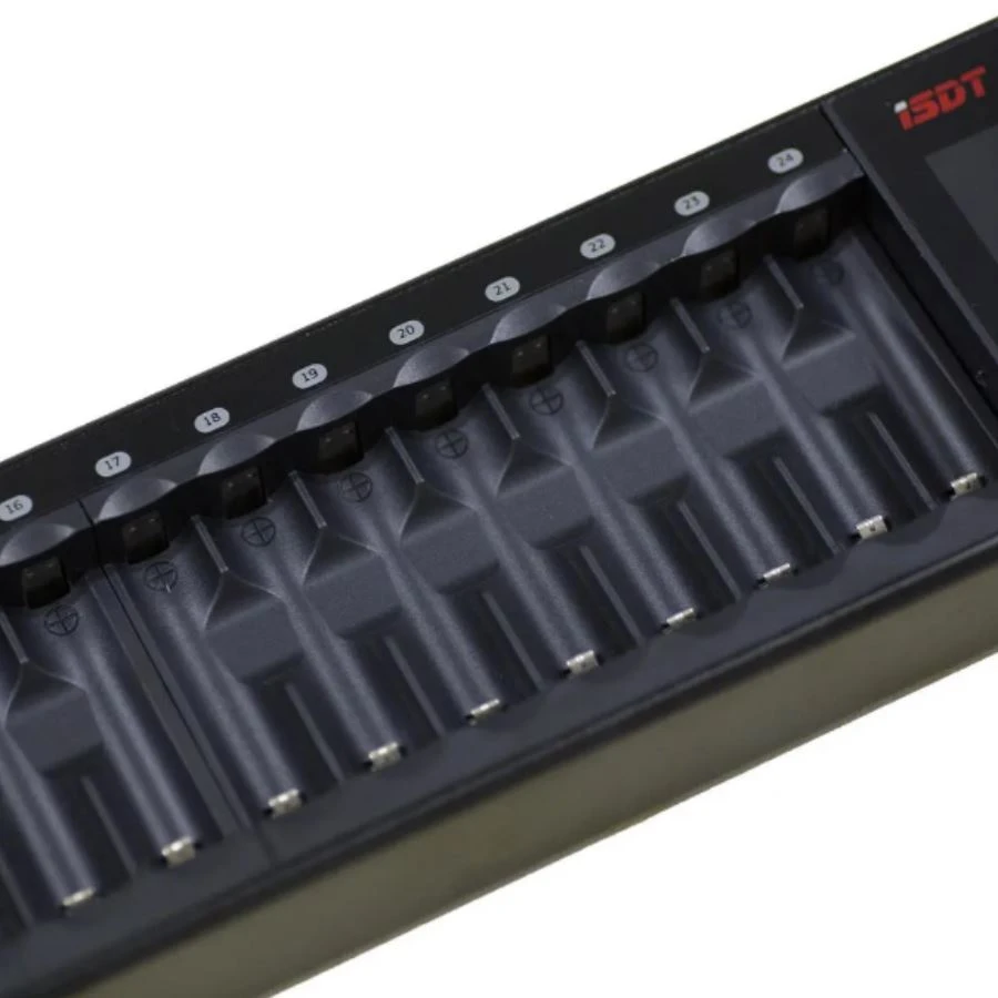 The ISDT N24 supports NiMH, Eneloop, NiCd, NiZn, LiIon, LiIonHV AA/AAA cells can charge 24 batteries simultaneously.
