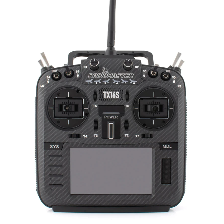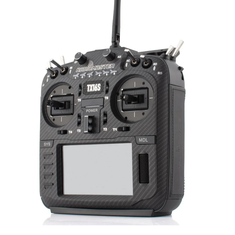 The Radiomaster TX16S MKII MAX edition is the second version of the TX16S MAX. The Max editions feature CNC Upgrade parts and a folding handle. The TX16S was created to address the need for a high-performance open source transmitter. The Radiomaster features ultra-smooth precision hall sensor gimbals with Aluminium facia and a large 4.3” display. The TX16S has a built in ELRS module and a JR expansion module bay supporting TBS Crossfire modules amongst others. The Radiomaster runs on the Open Source EdgeTX software. This version is the MAX edition with Carbon Fibre effect fascia, black CNC upgrade parts, leather side grips, V4 Hall Gimbals and ELRS module. Check you are ordering the right one, ELRS or 4in1.