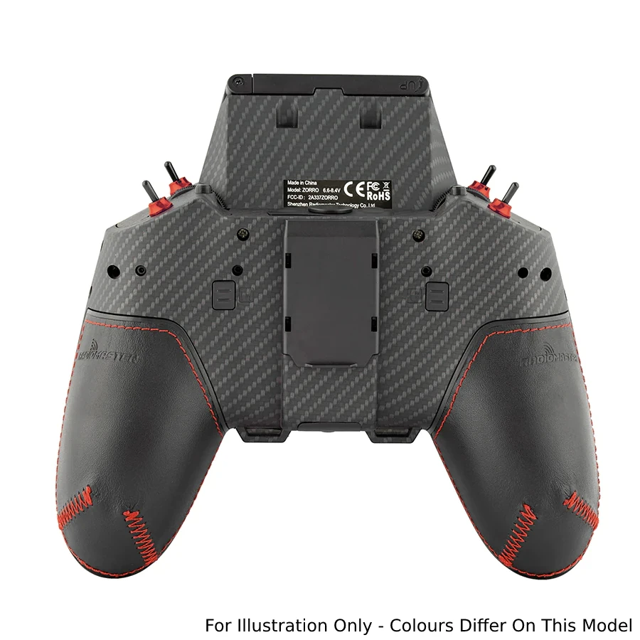 The Radiomaster Zorro MAX features upgraded AG01 mini metal hall sensor gimbals, CNC parts, stylish carbon fibre effect body and leather grips. All the original features are retained including ergonomic design, large bright LCD screen in the perfect viewing position, travel adjustable HALL sensor gimbals, a nano size external RF module bay, built-in USB-C Charging, USB-C Data port for updating and playing simulators, rear and top assignable push buttons, scroll wheels, RadioMasters 7 button menu navigation system, headphone audio output, external power source input and a host of RF options the RadioMaster Zorro is set to change the game once again.