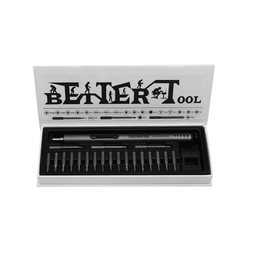 The Sequre ES-180 micro electronic screwdriver is a light, portable screwdriver with manual and automatic modes. Included is a wide selection of Steel bits. The screwdrive features an LED lamp for extra illumination. The integrated battery can be charged with the included USB cable.