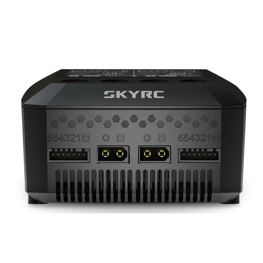 SkyRC B6 Nano Duo is an AC powered dual channel charger capable of charging at 200W (200W total shared between 2 channels). The B6 Nano supports multiple battery chemistries including LiPo/LiIon/LiFe/LiHV 1-6S and NiMH/NiCd 1-15S. The SkyRC B6 nano duo is quite compact, measuring only 127x115x71mm and weighs only 561g. The charger features 4 capacitive touch buttons for quick-response and ease of operation. The B6 Nano Duo also allows monitoring via a mobile phone (android or apple) supported and supports over the air updates.