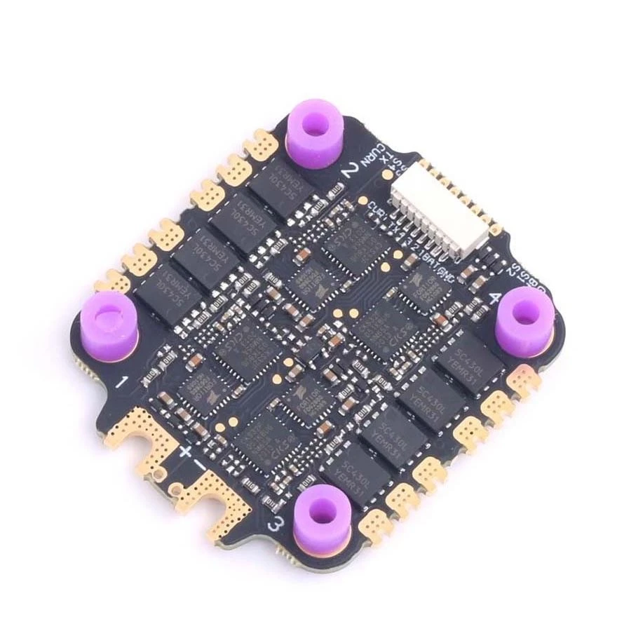 The Skystars KO60 4in1 60A ESC and F7 Flight controller stack. The KO60 ESC supports 3-6S and includes high quality Mosfets, It runs BLHeli_32 firmware and supports all recent modern ESC protocols like DShot 1200 etc.