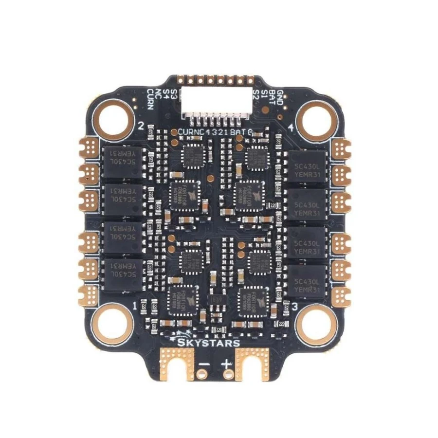 The Skystars KO55 4in1 60A ESC supports 3-6S and includes high quality Mosfets, It runs BLHeli_S firmware and supports all recent modern ESC protocols like DShot 1200 etc.