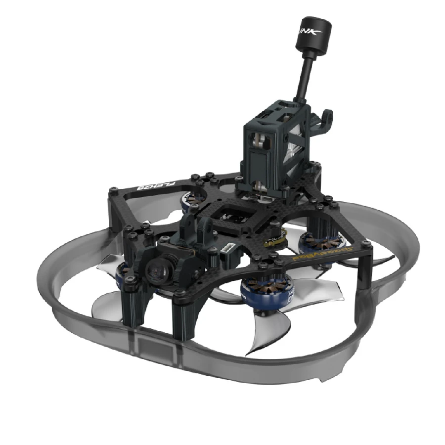 The SpeedyBee Flex25 is a 2.5″ cinewhoop with an innovative design that allows the quad to be 28% smaller then a normal 2.5″ quad. SpeedyBee have carefully placed the motors at different levels allowing the props to overlap. This means that the thrust is the same but the wheelbase is only 78mm. This version is the DJI HD versionand comes with a Runcam Link Falcon nano. The Flex25 comes with the F745 35A AIO flight controller which includes wireless programming via the SpeedyBee app.