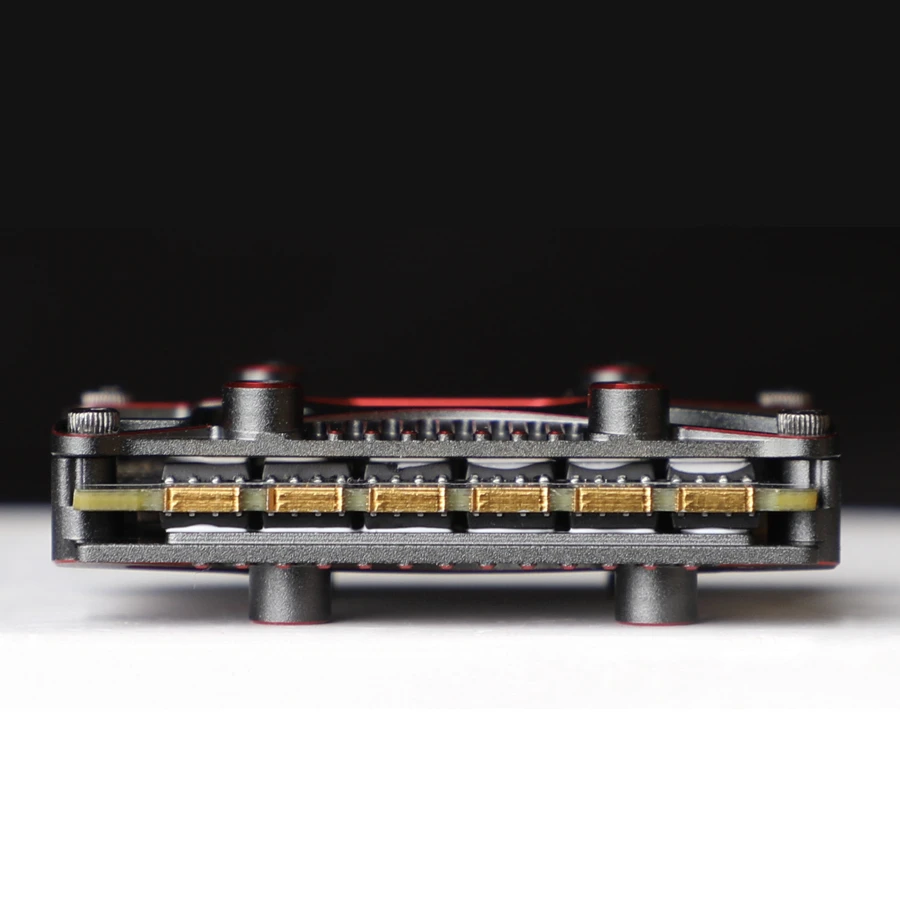 The T-Motor F66 Mini 6S 4in1 ESC is a well designed 4in1 ESC with 20mm mounting holes. the ESC features a double sided heatsink deisgn allowing better cooling and higher currents. Quality components have been chosen including TDK Capacitors. The mounting holes have an offset design allowing better installatin in a racing drone frame.