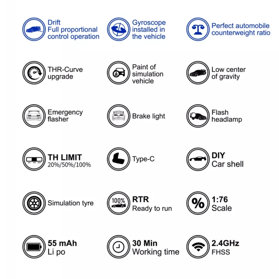 – 1:76 Sports model car with P21 four-way detachable remote control